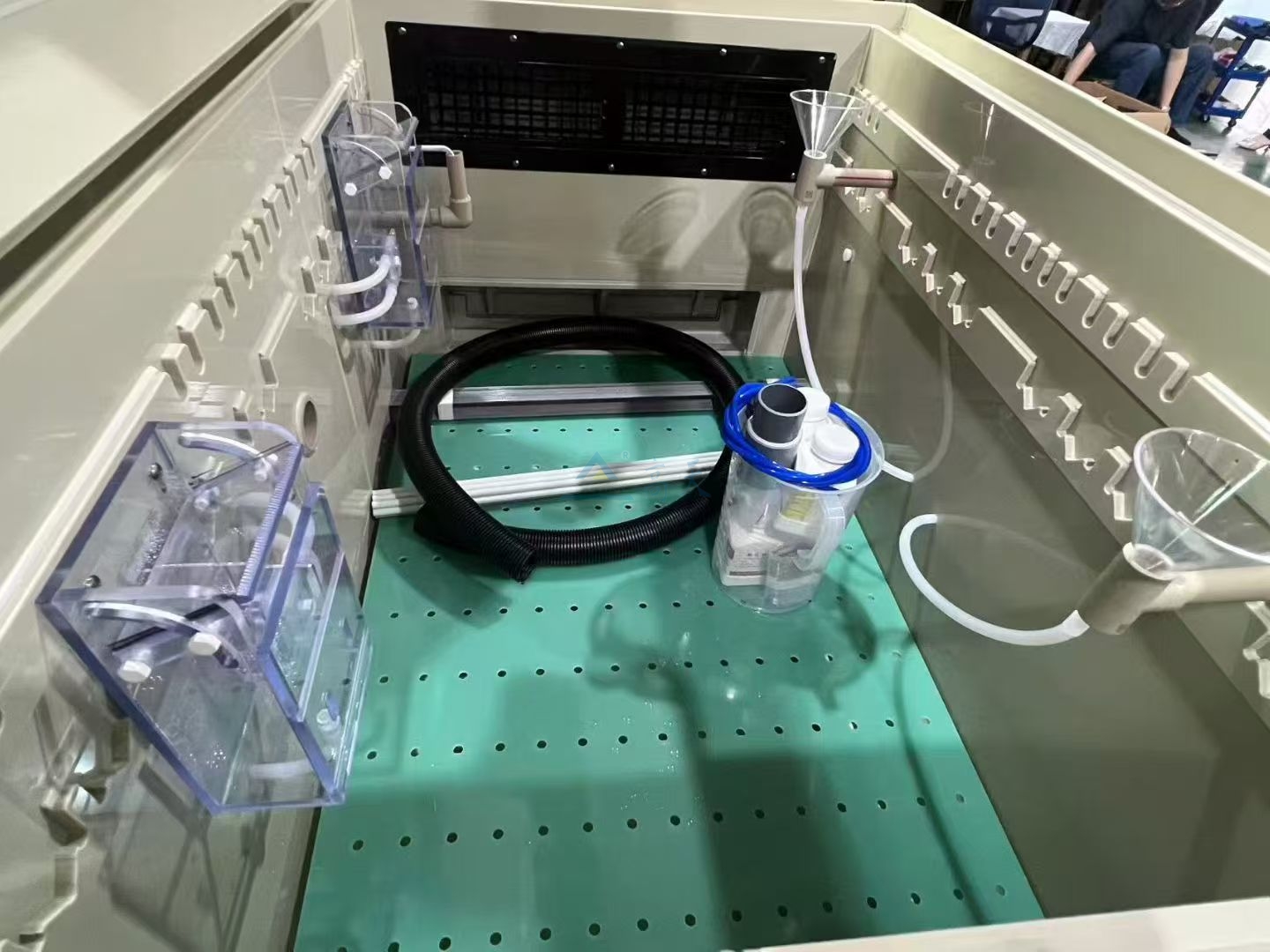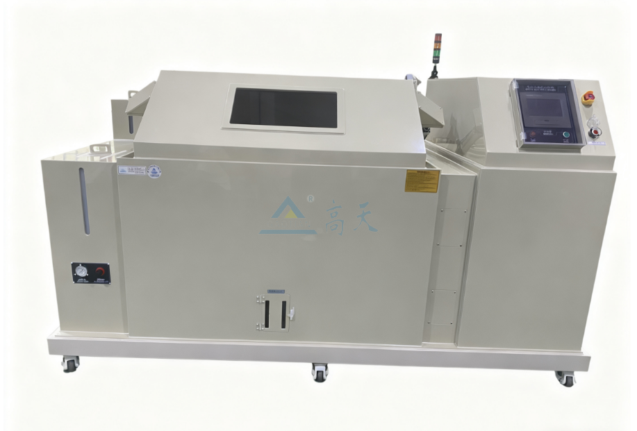 盐溶液供给系统 | A.置于侧面,大约有40升,由PVC耐压材料制成。 B.盐溶液可以被储存在箱体侧的一个特殊的储罐内。一个带有液位开关的喂料罐以保证溶液的连续性。溶液通过连接管路到达喷嘴,利用压缩空气形成喷雾。 可编程控制系统 自主研发的彩色触摸式智能可程序温湿度控制器; | |||